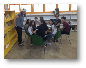 As part of the twinning and partnership, the Bornblum 8th grade class visited Shoham recently during its annual trip to Israel. Bornblum students toured the Yahalom school and, following an “ice-breaker” activity with the Yahalom students, engaged in a workshop about Jewish and Israeli identity. The students also enjoyed a traditional Israeli meal together in the Shoham community garden.