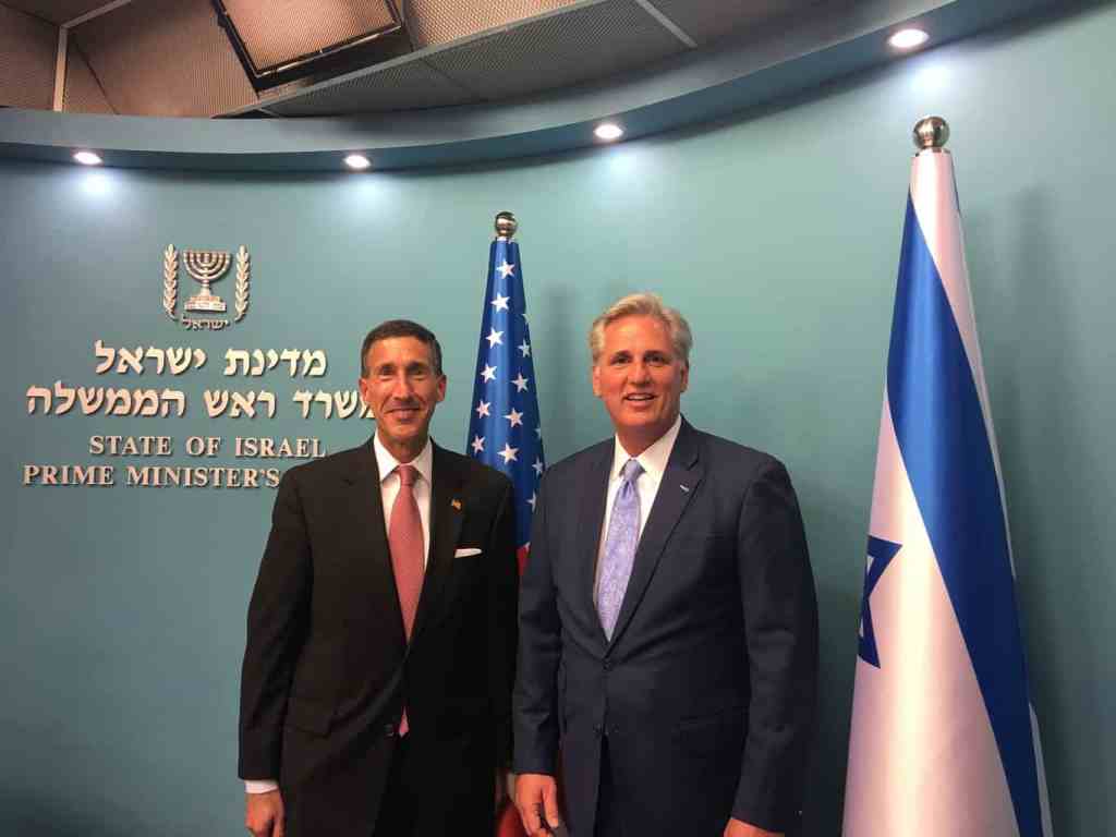 Pictured above: Congressman Kustoff, left, pictured at the Israeli Prime Minister’s Office with House Majority Leader Kevin McCarthy.