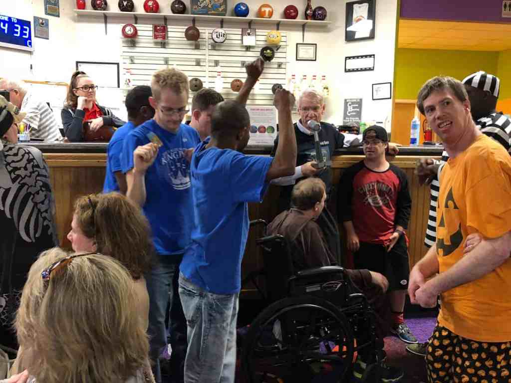 While the athletes bowl, their parents or caregivers can socialize, run errands, or enjoy a rare moment of alone time. “When Julie was living at home, it was 24/7. Special Olympics programs gave us the freedom to do things without worrying about her. So this gives these parents the opportunity, some of them will stay and visit with other parents, and some parents will drop off their sons and daughters to the lane and they can do things without having to worry.”